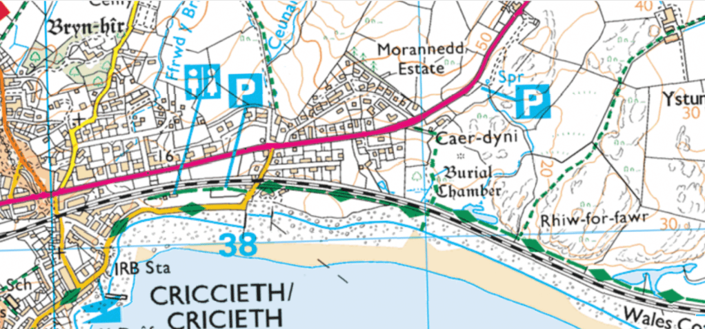 Access to site: Via public footpath from the beach at Criccieth. Easy to find. Be aware of dogs and children in the field as there is a lot of broken glass covering the area. It looks like at some point there was a mass amount of old glass and pottery buried in the field. Nonetheless, this is a beautiful spot with Criccieth Castle sat in the background.