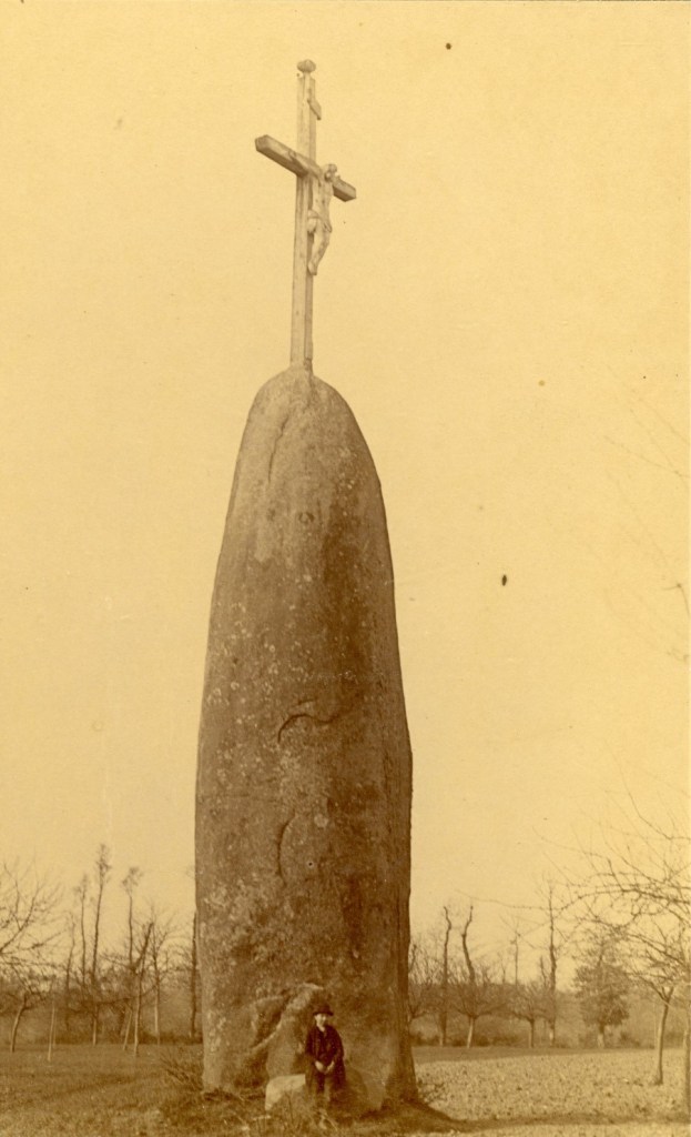 At some point there was a cross placed on top of the menhir, an attempt to christianize the sculpture. Removed during the Revolution, the cross was replaced in 1816. It disappeared at the beginning of the 20th century, broken by a strong storm.