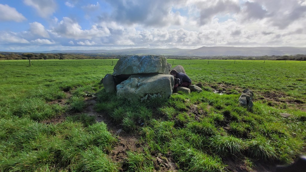 There appears to have been two chambers, one of which is still partially intact and around 75 prehistoric ‘cupmarks’ and possibly several lines on the capstone. Trellyffaint was recently part of a four year study, which i believe started around 2016, which was initially focused on the rock art here.. But also included an earthwork survey of the site which revealed a range of important discoveries…