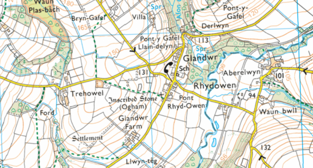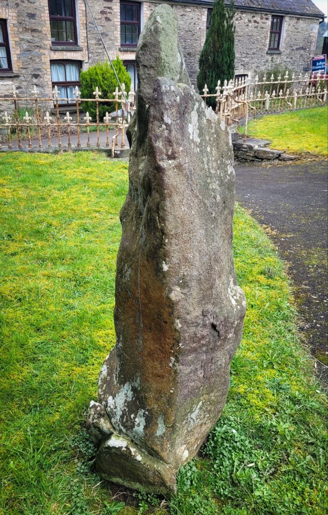 Macalister, in 1945 reports: `It has now been removed once more, to the enclosure surrounding the Baptist Chapel of the hamlet of Glandwr, where it stands close to the gateway’. – https://www.ucl.ac.uk/archaeology/cisp/database/stone/lfrn2_1.html