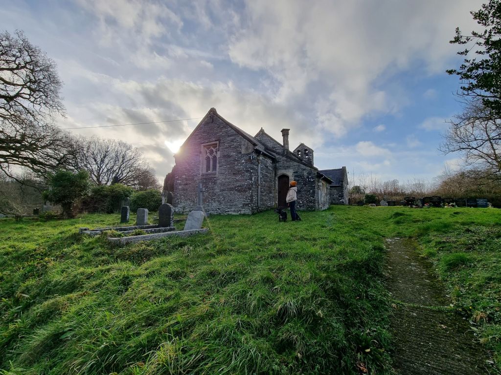 The church, which is under the invocation of St David, is a chapel belonging to Manor Deifi, beyond Cilgerran. Ot contains a font of the thirteenth century, similar in design to most Pembrokeshire fonts, viz. A cubical block, chamfered off, and cut into curcular sides beneath ; but the edifice itself is not older that the fifteenth century, when it probably replaced an older building. **Note that the church was entirely rebuilt in the 1880s**