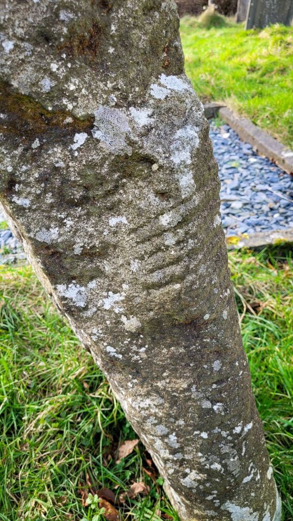 Within this churchyard is a 7ft tall spotted dolerite stone inscribed with 5th century Ogham markings as well as a cross, which was thought to have been added around the 9th or 10th centuries CE. A few people have also suggested there are prehistoric cup marks on one side of the stone.