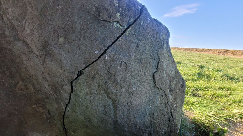 A beautiful monument with stunning views of the Preseli Hills. Sadly, one of the supporting stones has a large crack. Who knows how long it will remain standing?..