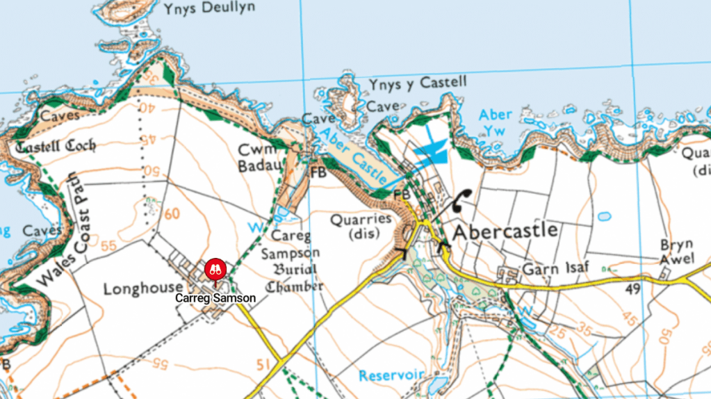 We like to park at the carpark in Abercastle and follow the Pembrokeshire Coastal Path for about a mile up to Carreg Samson. At busy times of year this carpark gets very busy and spaces are limited, but the walk from here is stunning. Alternatively, visitors to Carreg Samson tend to park on the grass verge along the main road near the entrance to Longhouse farm. Remember to never restrict access to fields or driveways. This is also currently a working farm so there may well be tractors about when you visit.