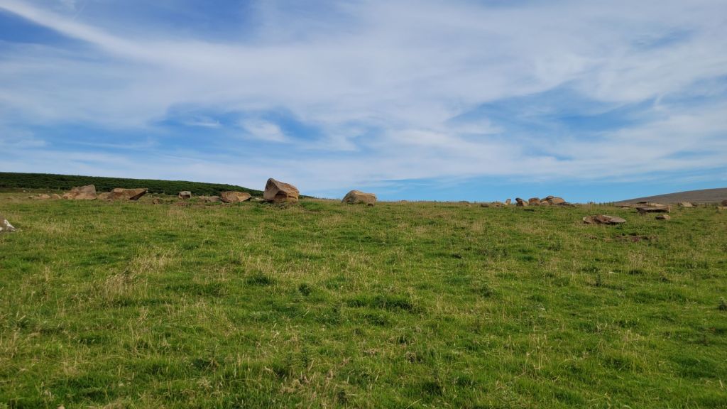 Standing stone in Pembrokeshire, Wales. A standing stone over 2m tall overlooking Carningli. The field is which it stands is full of large stones strewn about. Some have suggested there are the remains of a ‘chambered tomb’ in the field.