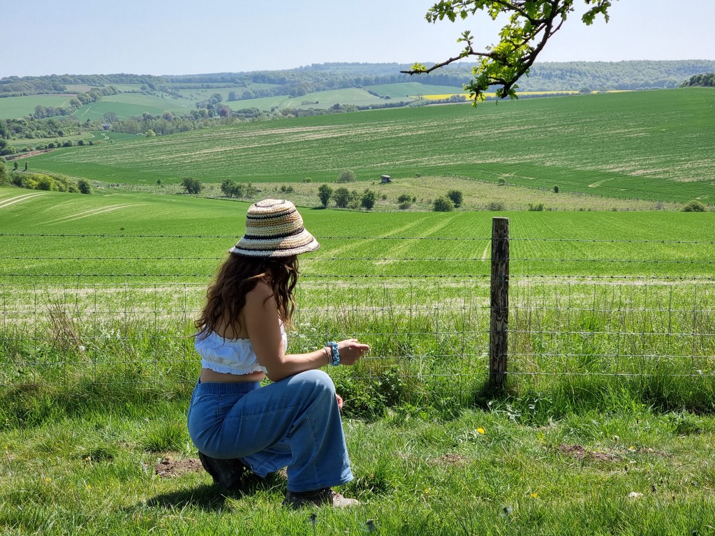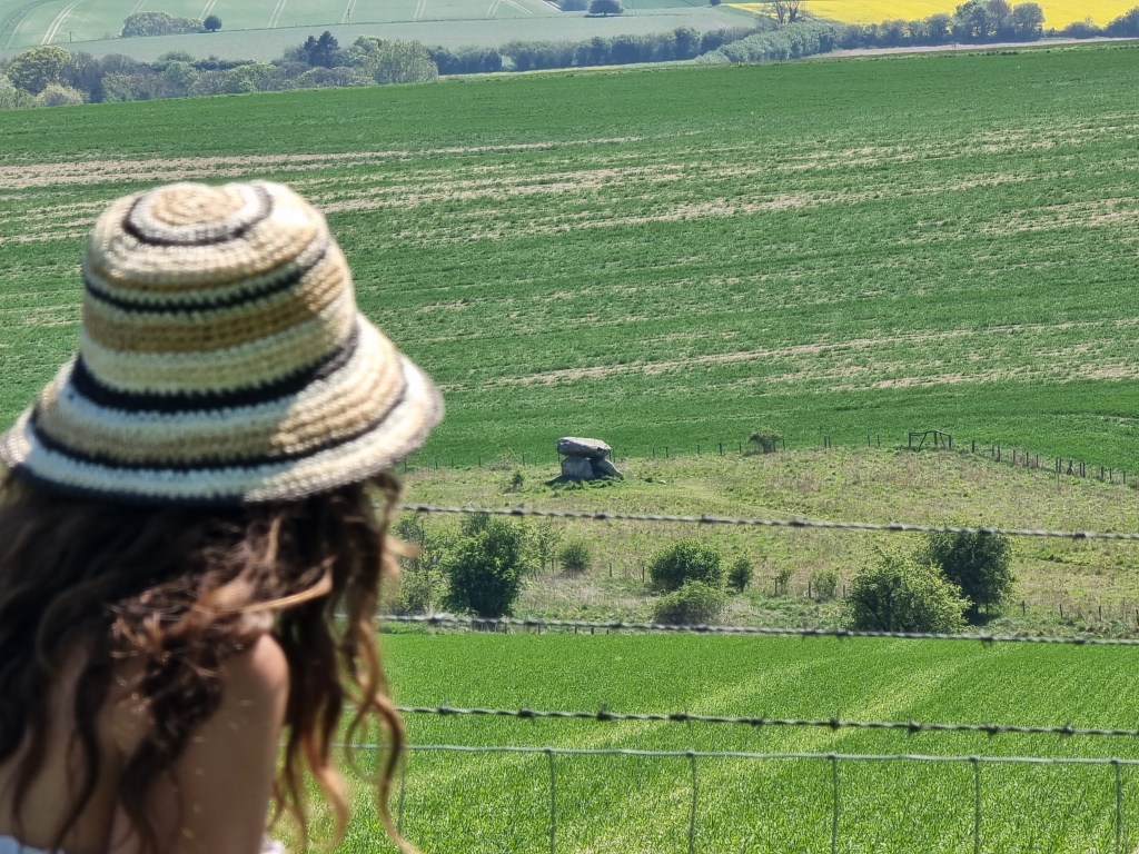 We parked at the “Up On The Downs” carpark and followed the public footpath towards the dolmen…