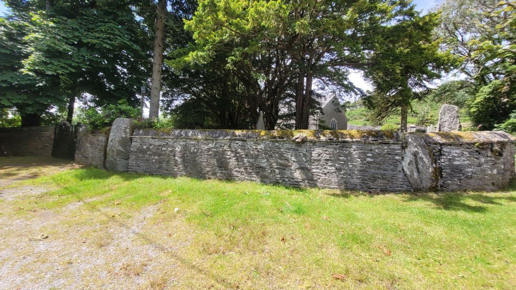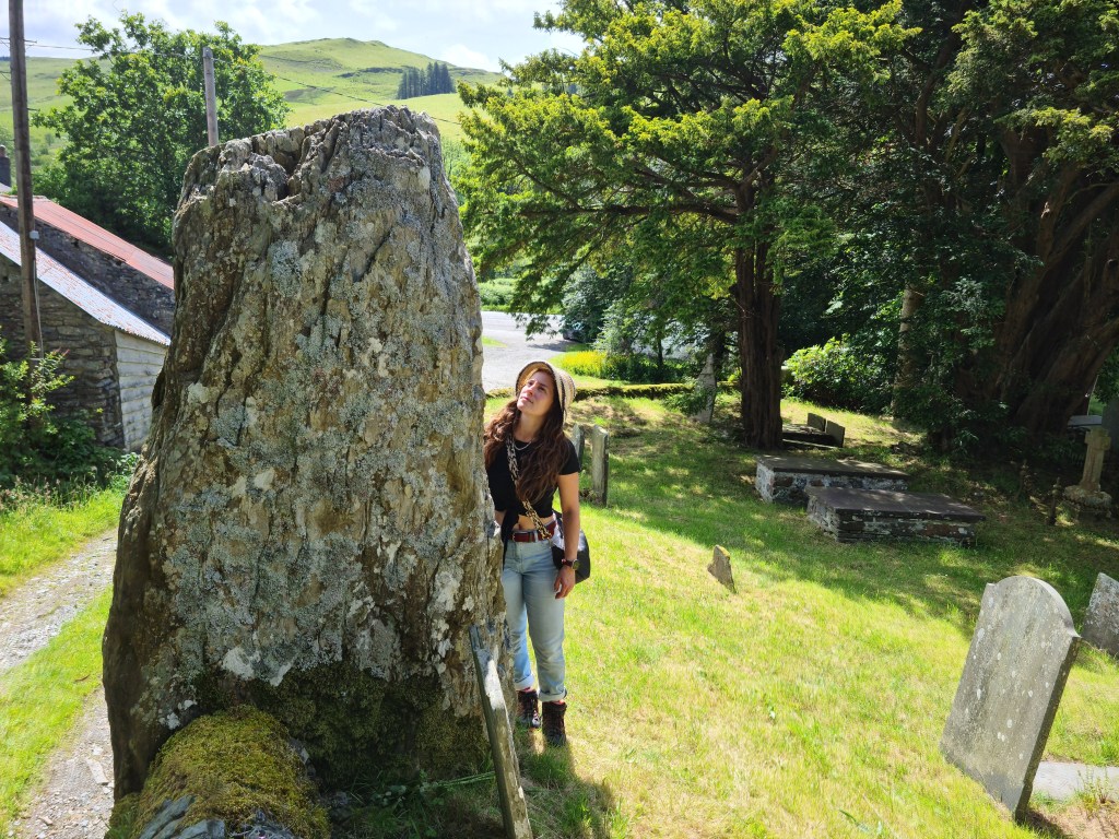 An early mention we found talking of the stones in the churchyard walls was from 1770. From Diaries of Tours made in England and Wales by the Rev. A Catcott. An English geologist and theologian who’s journals contain descriptions of the surface geology which he was gathering to prove his belief in the biblical flood. He wrote “In the churchyard at Ysbyty Cynfyn a druidical stone: not placed as a fence since it stands edgeways to the bounds.”