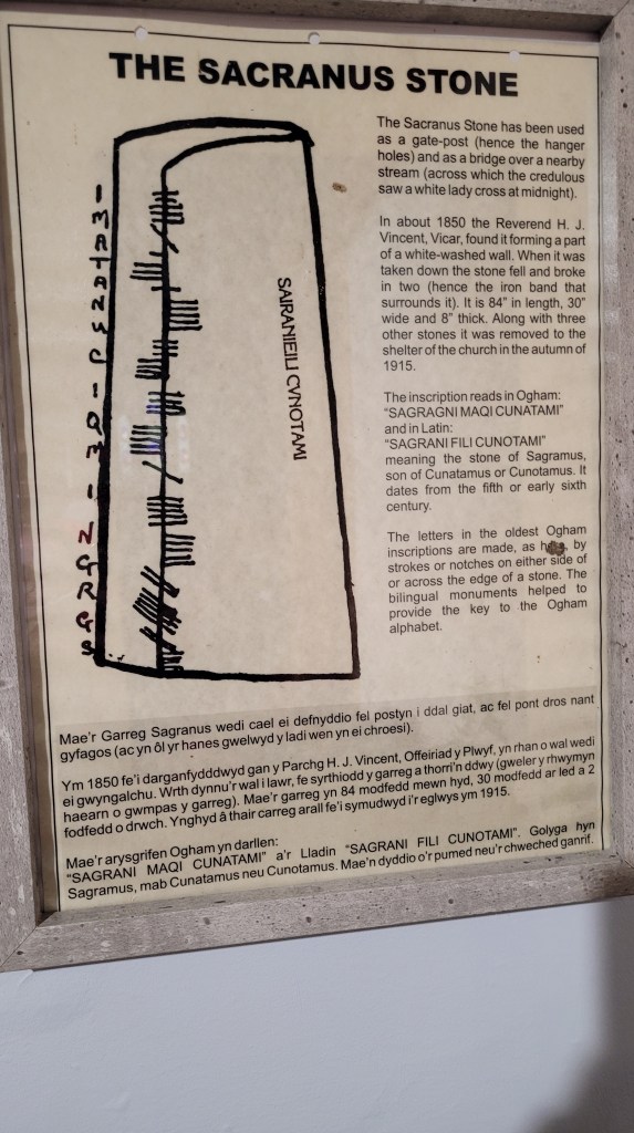 The Sagranus Ogham and Latin inscribed Stone – St Thomas Church – St Dogmaels.