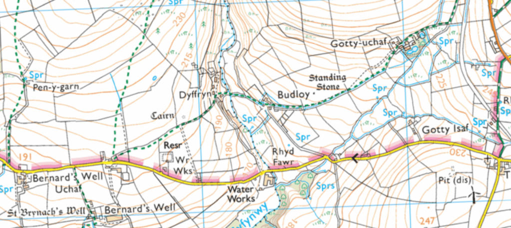 We walked here following the public footpath that leads past the Dyffryn Stones, through some beautiful country lanes toward the Budloy Stone.