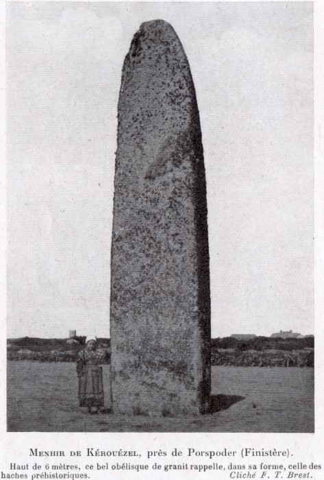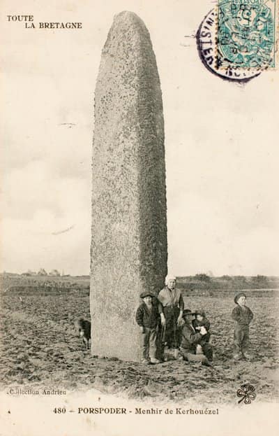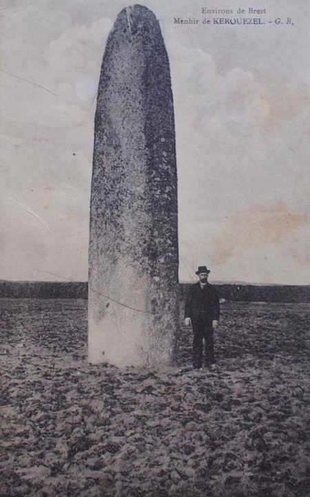 Georges Guénin relates in his book Legend Stones of Brittany/Pierres à Légendes de la Bretagne ( 1936 ) : “According to a fisherman from Lanildut, Mr. Masson, the great menhir of Kereneur, over 6 m high, would turn on itself and go swimming at the sea. I could know neither the hours nor the days when the stone would perform such curious acts.”