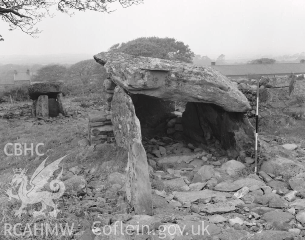 Excavations in the early 1960s, led by Thomas George Eyre Powell, revealed two successive stone chambers beneath a single long cairn. The following is quoted from Megalithic Enquiries in the West of Britain, published by Lynch, Frances, Powell, Thomas George Eyre, Powell, T G E, Corcoran, J X W P, Scott, J G, 1969 –