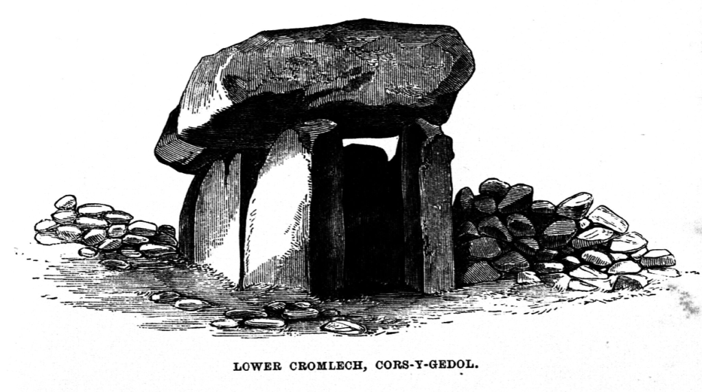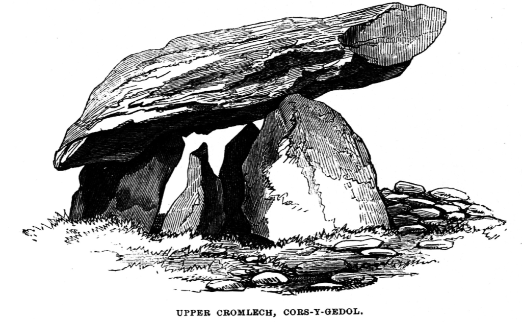 “We now proceed to lay before the members a brief mention of some that have not yet been thus noticed, and we commence with those that stand on the estate of Corsygedol in Merioneth. They are all of them in a state of greater or less ruin ; but as far as the care of the present owner of the estate can secure them, they are not likely to be still further mutilated or destroyed. There is, however, one easy and simple precaution which will occur to most. Around these cromlechs is a large collection of stones which once composed carns. If a low wall was built with these stones round the cromlechs, with a small wicket or steps for an entrance, they would be protected from cattle, and more likely to be respected by visitors and neighbours.