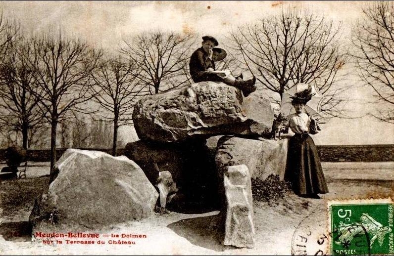 After excavation, these slabs were moved to the courtryard of the castle. At some point they were placed into the form of a pyramid that was overthrown by German troops in the War of 1870. Subsequently, Jules Janssen had this pseudo-dolmen built with the slabs in the same place, with no concern for identical restoration. To read the full description by John Peek, here’s the link – https://archive.org/details/inventairedesmeg0000unse_m4o0/page/117/mode/1up?q=Meudon