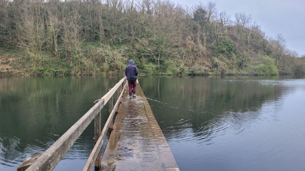 To get to the standing stone, we parked at the parking for Bosherton Lily Ponds, which is a beautiful walk. Unfortunately, when we visited, the water was so high that the lilies were underwater. But that the bridges over the water were very interesting to walk over!