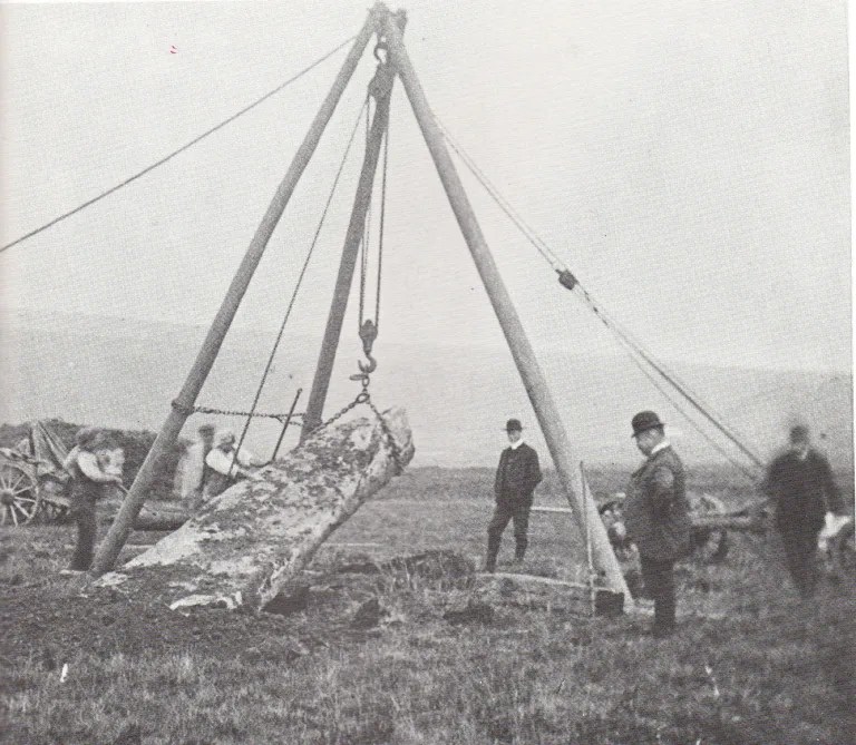 The re-erection of these fine stones was performed by Messrs. Turpin, of Plymouth, under the supervision of the Rev. S. Baring-Gould, Mr. R. Burnard, and Mr. R. Hansford Worth. (S BARING GOULD).” – https://archive.org/details/reportandtransa10artgoog/page/172/mode/2up